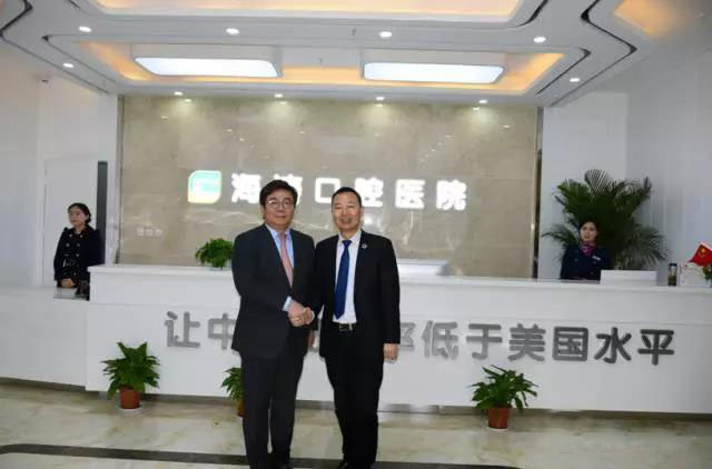 (韩国登特斯沈社长<右一>认为海涛口腔新院雁塔医院的综合实力和技术水平早已不输韩国甚至欧美,代表了亚洲牙科技术发展的方向,未来会和海涛口腔有更紧密的合作)