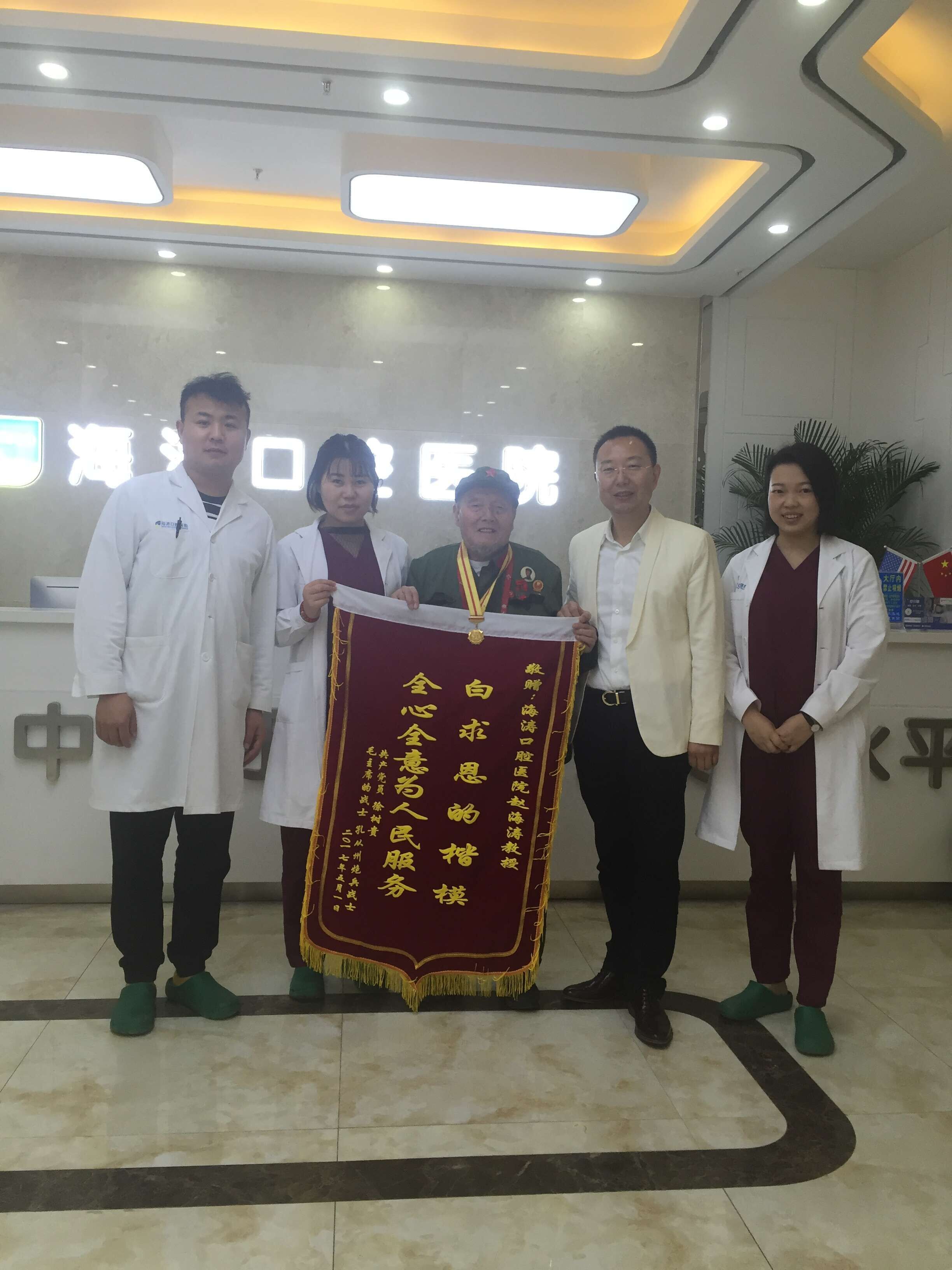 (0诊疗费、 0手术费限量优惠种植活动让众多患者享受到种植牙的便利,老革命一次看牙两次送锦旗只为表示感谢。)