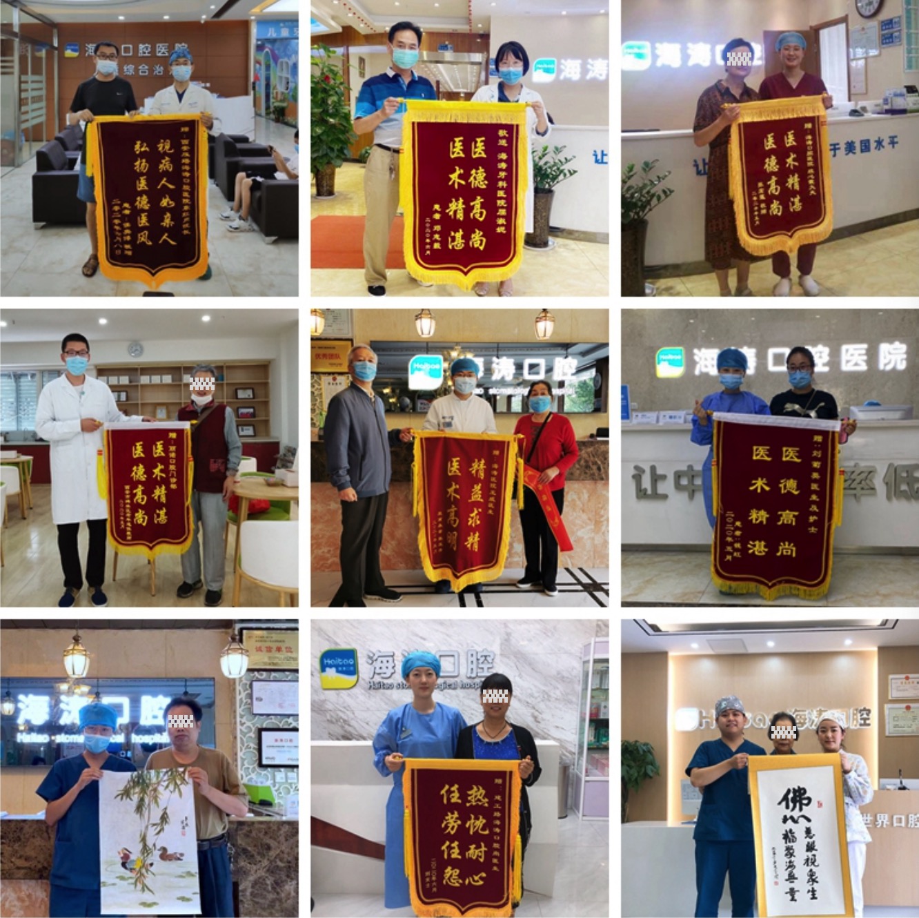 每个月,海涛口腔都会收到数十面锦旗和感谢信,既有对员工好人好事的感恩,也有对医师精湛医术和护士无微不至服务的褒扬,而更多是的顾客对海涛口腔企业文化的极大肯定。