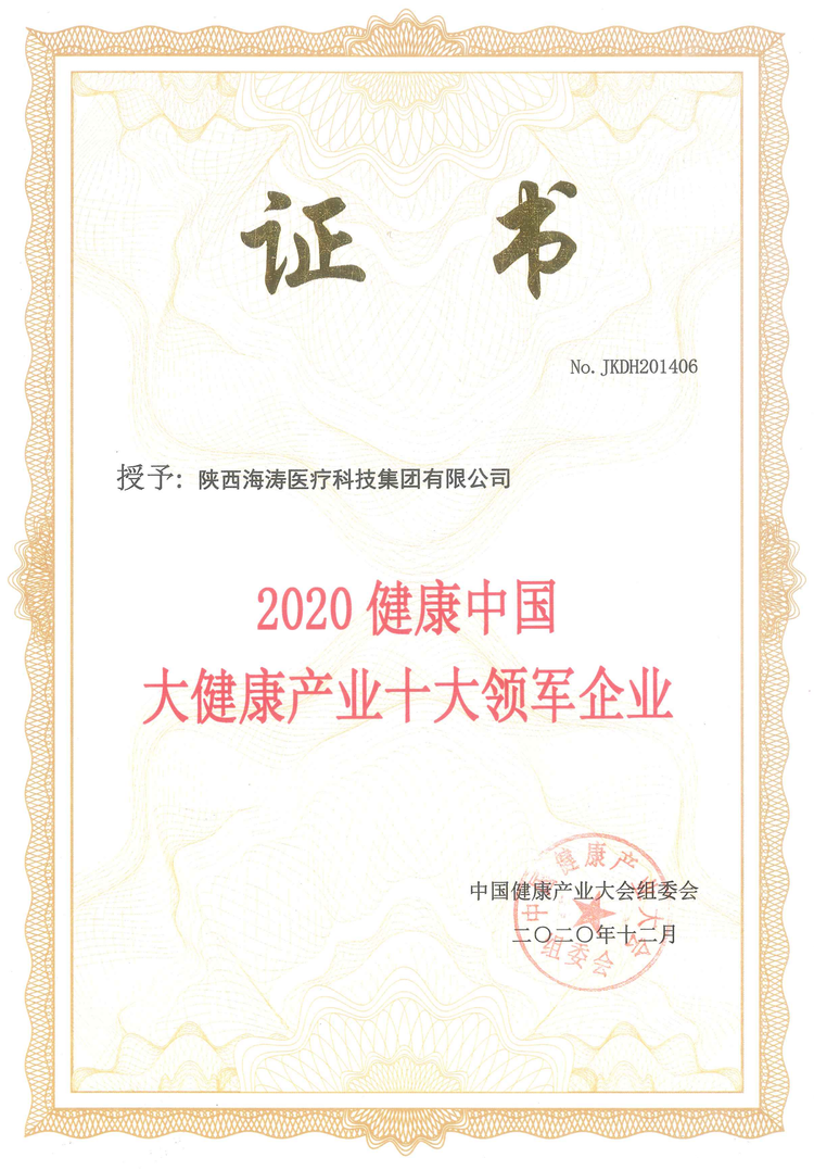 海涛集团被授予“2020健康中国大健康产业十大领军企业”