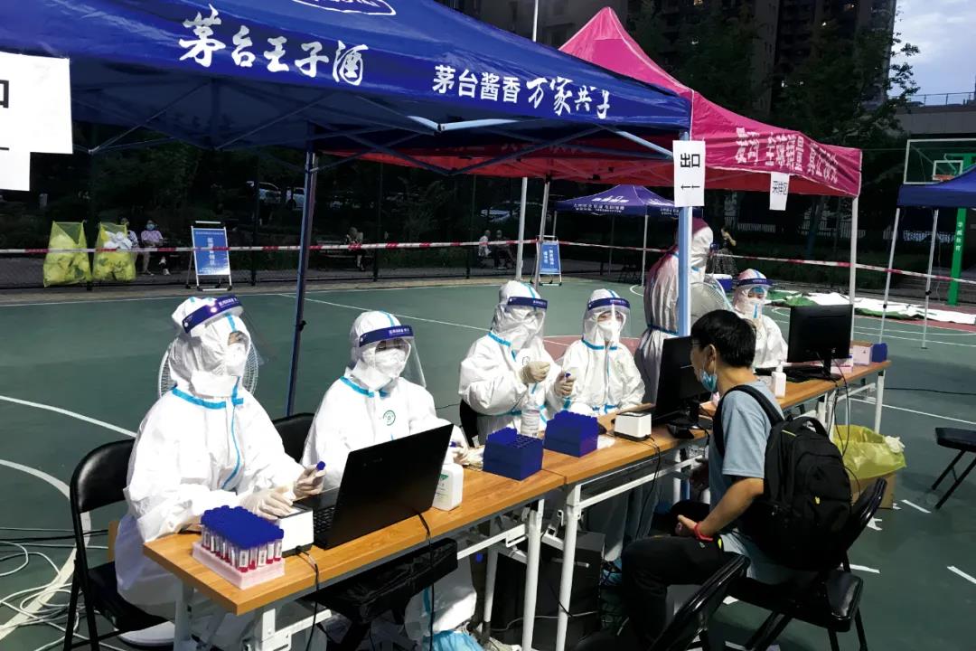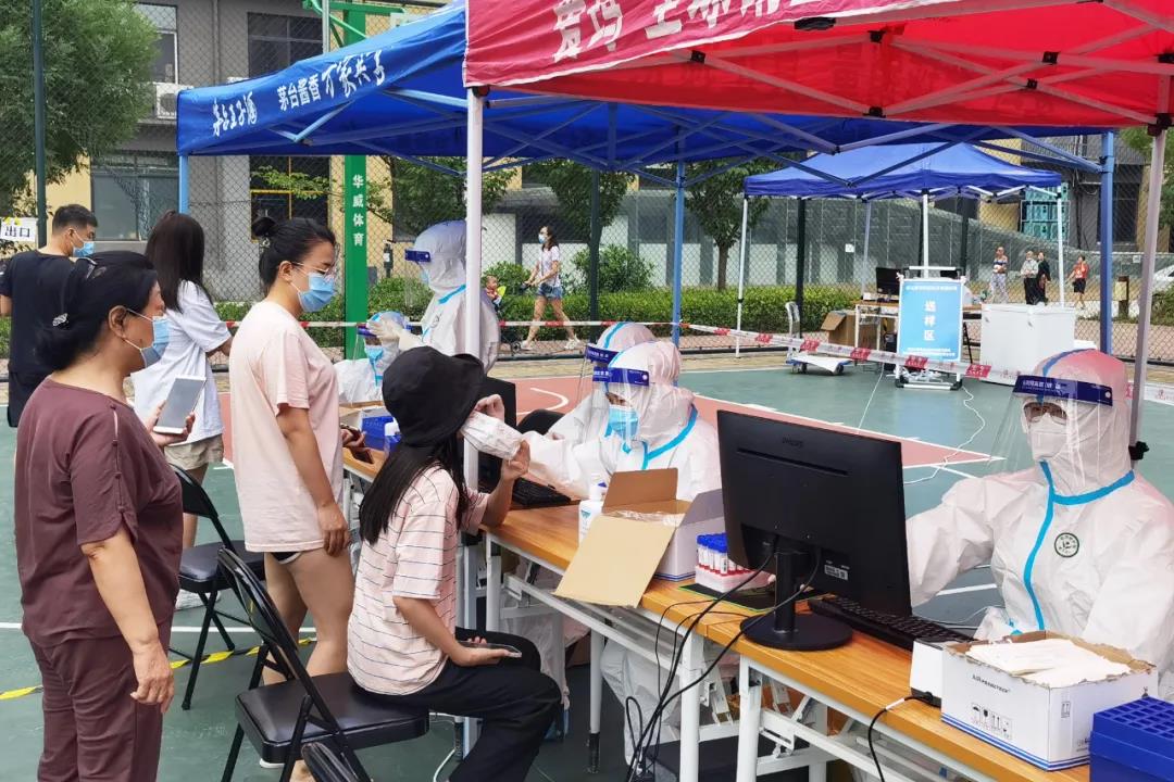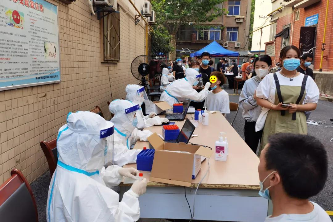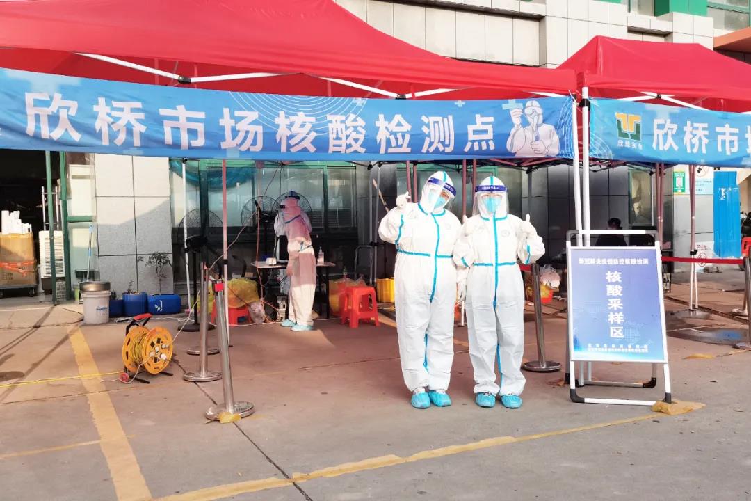 海涛口腔西安雁塔雁西门诊的检测人员在漳浒寨街道欣桥市场,分白天、晚上两个班次开展核算检测。天热的时候汗流浃背,晚上忙到12点,有时一忙起来连饭都忘记了吃。