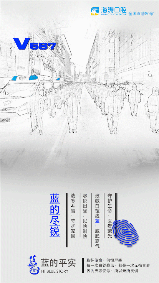 2022年海涛推出#蓝的故事#第一季《HT Blue Story》第一集,开篇《 穹顶之下的海涛蓝故事——“战”蓝》,采用时间上倒叙手法进行,前后叙述海涛口腔品牌27年来大大小小的故事。