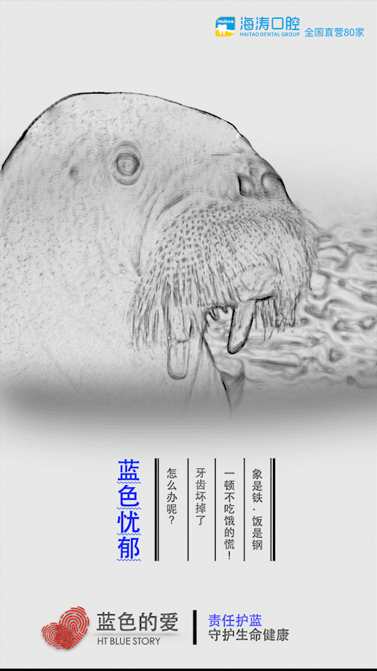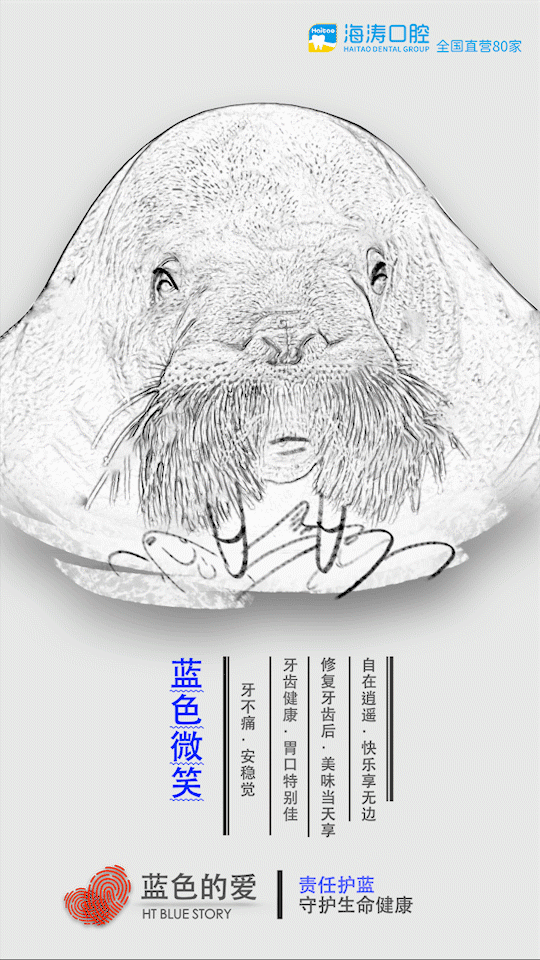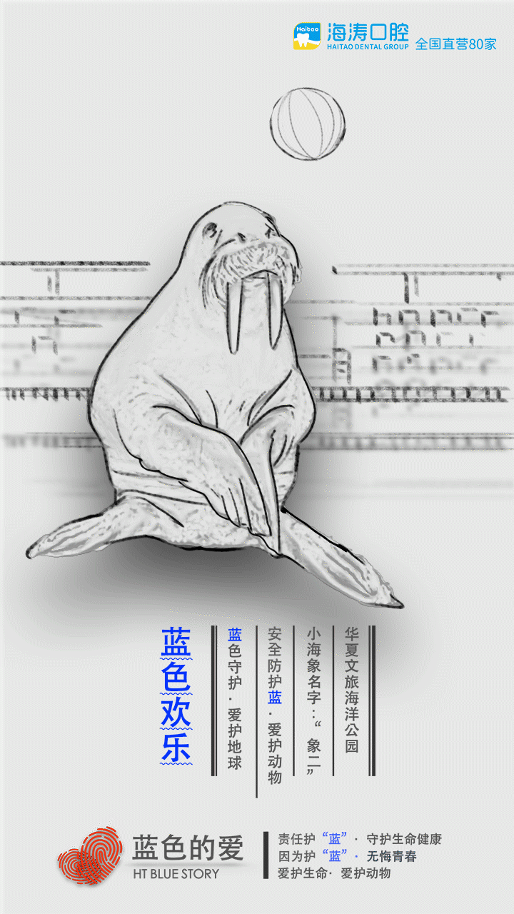 2019那年的夏天,海涛口腔为西安华厦文旅海洋公园的牙齿受损的海象“象二”做了牙冠保护,为它戴上特制的牙冠,重新拥有一副新牙。