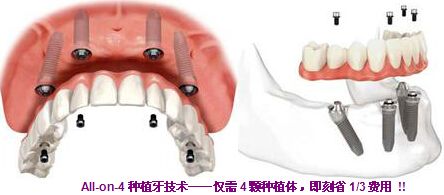传统半口种植牙至少需要安装6颗以上种植体,而All-on-4即刻负重种植牙技术半口只需4个种植体,大大节省治疗费用。