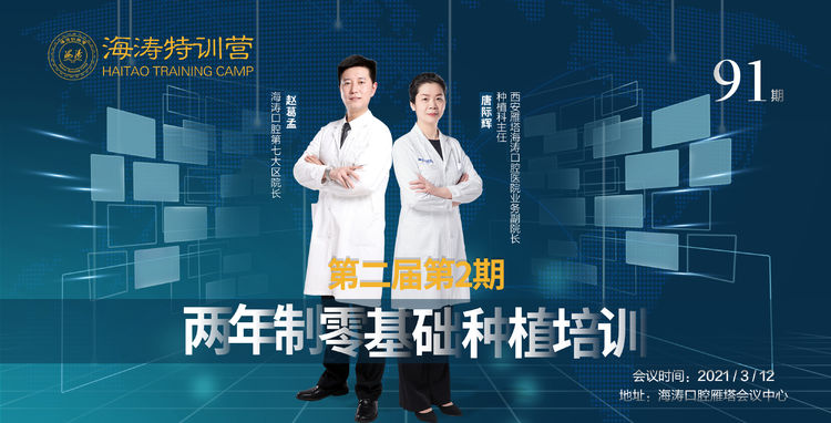 3月12日,“海涛特训营”第91期在陕西海涛医疗科技集团(以下简称“海涛集团”)西安雁塔医院会议中心举办,此次培训是第二届“两年制零基础种植培训班”的第2期培训,培训班的全体学员参加了线上学习。