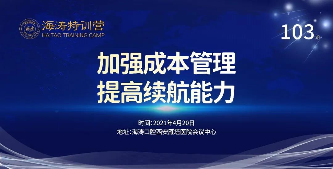 4月20日,海涛特训营第103期在陕西海涛医疗科技集团(以下简称“海涛集团”)西安雁塔医院会议室举办,此次培训的主题为“加强成本管理 提高续航能力”,海涛口腔各大区医院/门诊的相关岗位人员通过线上直播的形式进行了同步学习。
