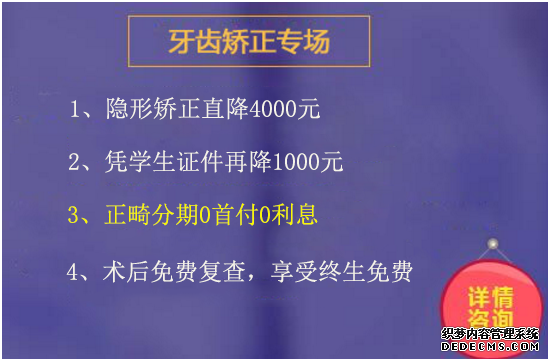 3、微笑女神季,到院可免费建立口腔档案;提供口腔全景拍片,专业全口检查;网络预约享受优先就诊,免专家挂号费。 (价值480元)