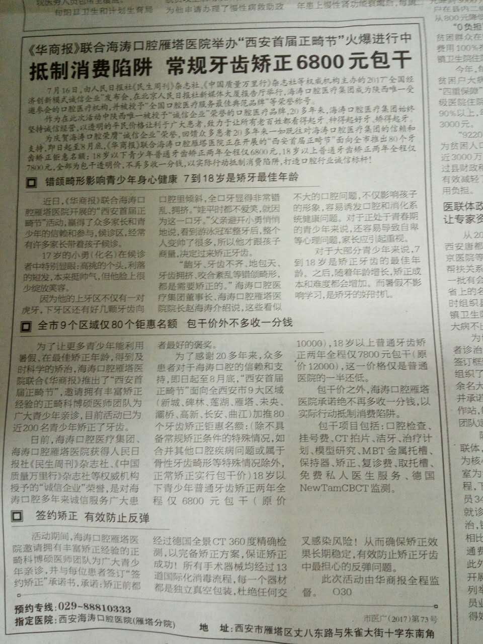 《华商报》联合海涛口腔雁塔医院举办“西安首届正畸节”火爆进行中