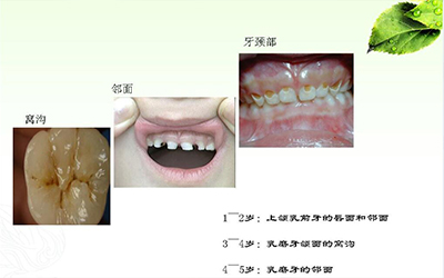 在儿童口腔常见病中发病率最高、分布最广的是龋齿(又叫蛀牙),糖(尤其是蔗糖)和细菌是致龋的罪魁祸首。含糖食物贴附在牙面上,而牙面附有细菌,在适宜的温度和时间下,发酵产生酸性腐蚀物,从而侵蚀牙齿,形成蛀牙。窝沟、牙齿邻接面和牙颈部根面是龋病高发部位。