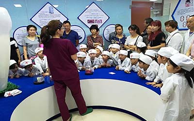 为了让儿童在口腔检查和治疗中不再恐惧,主动快乐的积极配合医生治疗,海涛口腔雁塔医院建立了儿童口腔科普馆,通过参观讲解牙齿模型、食物模型和“我当小小牙医”的活动让孩子了解到哪些食物要少吃,如何保护牙齿的知识。并率先引进哈佛甜蜜笑气治疗技术:治疗过程中运用笑气氧气联合镇静系统,整个过程中有淡淡的甜味,无呼吸道刺激,大部分儿童乐于接受,排除了孩子就医时的恐惧感,让儿童处于镇静、放松配合状态,能够与医生进行沟通,并听从医生的指令,治疗过程中能很好地与医生配合,避免了普通口腔给儿童治疗时,孩子注意力不集中、乱动不配合,易造成误伤的难题,有“无痛甜蜜牙科”的美称。