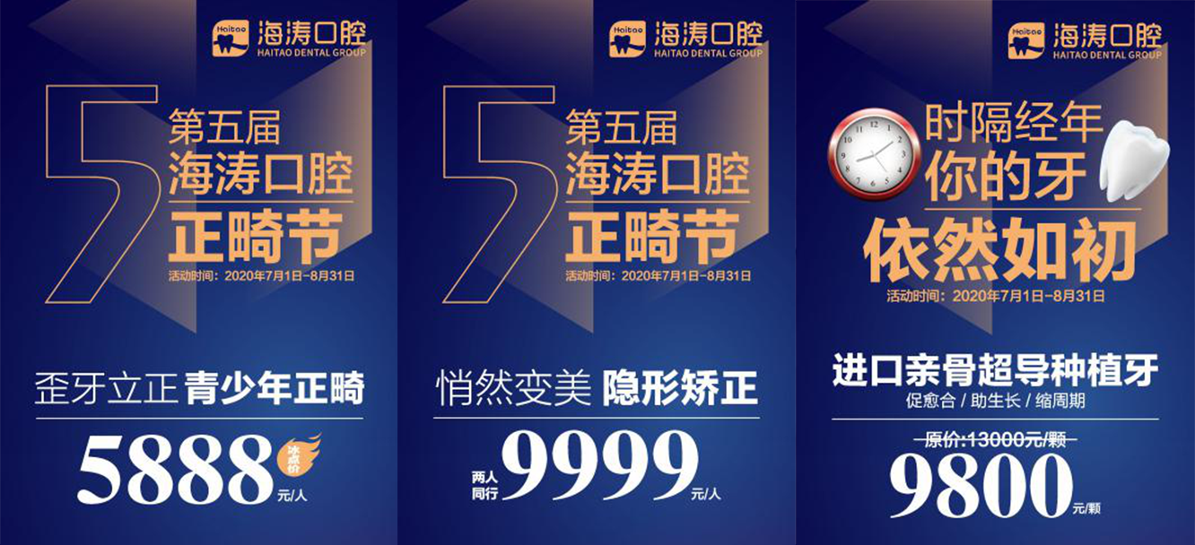 活动期间,青少年矫正原价13000元/人,现可享受5888元/人的冰点价,隐形矫正原价38000元/人,现两人同行可享受9999元/人的冰点价,同时,就诊后还可享受海涛口腔提供的四重好礼。