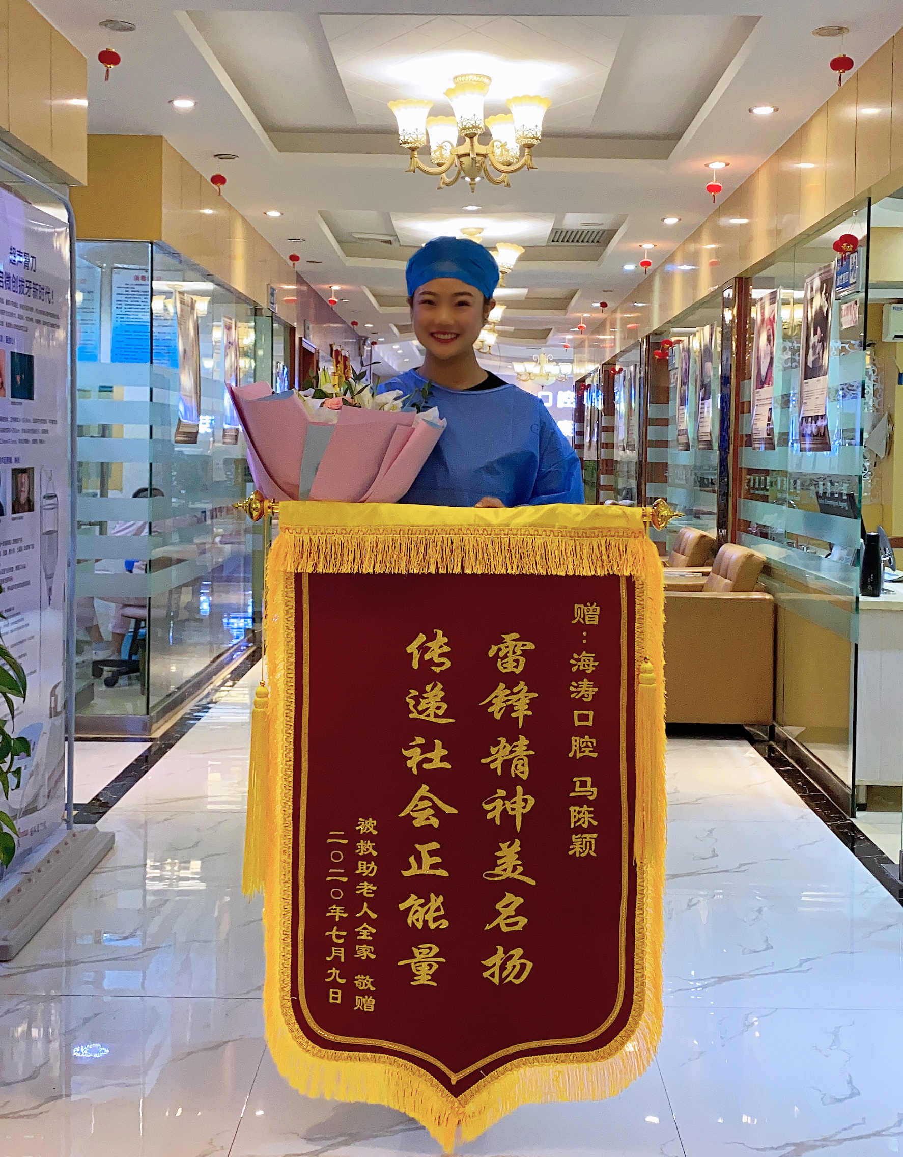 面对送来锦旗、鲜花,马陈颖说:“自己只是出于‘救死扶伤’的职业道德操守,这与海涛口腔企业文化对自己的培养密不可分,相信海涛口腔的每一位同事遇到这样的事情都会第一个伸出援助之手。”