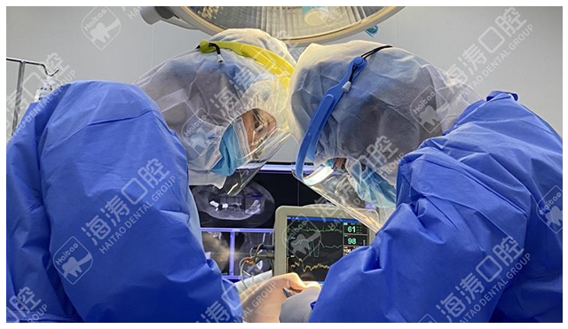 “我老伴3年前种牙,用了将近一年时间才种好。而我这半口牙,用了‘一天得’全口种植技术,仅用了一天就解决了。种完牙后吃了个肉夹馍,美滴很!”李女士逢人就说。对于缺失牙中老年人来说,即时恢复咀嚼功能是首要问题,但传统种植牙由于技术条件限制难以做到,而海涛口腔“一天得”全口种植技术,经过电脑精准定位即可确定种植体的数量、位置、角度和深度,制定出准确安全的种植导板。顾客在进行手术时,医生便可参照种植导板上的植体位置,实现微创、无痛、精准的种植牙手术。最关键的是该技术只需植入4颗或6颗种植体就可以解决半口无牙问题,并且当天种牙,当天就可佩戴固定义齿,当天就可恢复咀嚼功能。将传统种植需要3-8个月的疗程缩短为1天完成,且不需要植骨,没有额外费用,疗程短,费用低,符合众多缺牙者对种牙手术的要求。