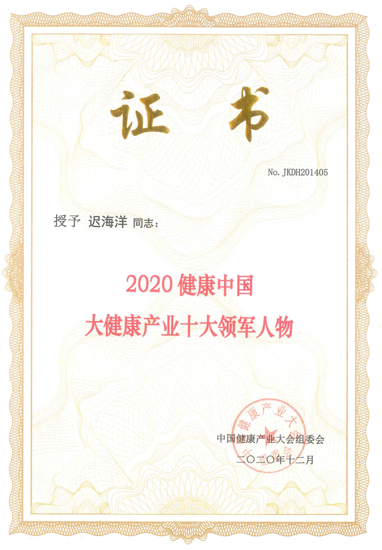 海涛集团CEO迟海洋女士被授予“2020健康中国产业十大领军人物”