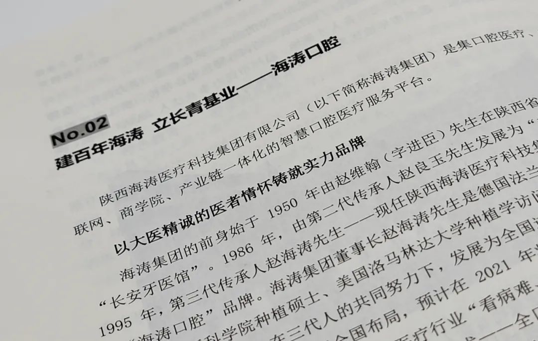 本书“企业篇”第二篇文章,就对“海涛口腔”从创业创新到发展壮大为大国品牌的历程,以及海涛集团董事长赵海涛先生“大医精诚”的医者情怀进行了详细的介绍。