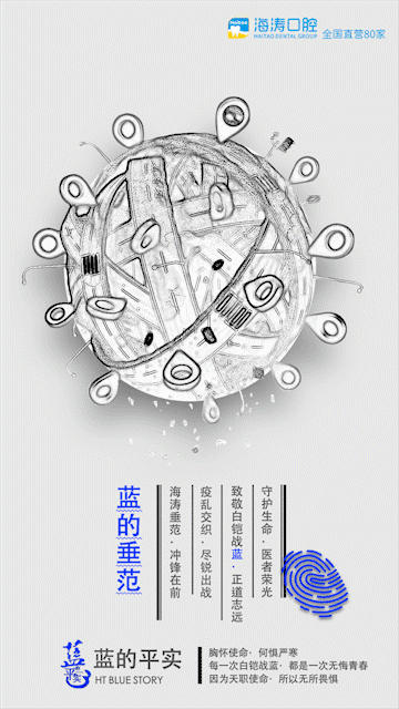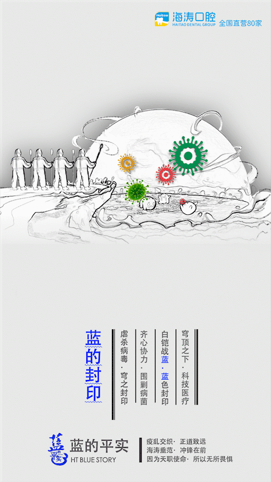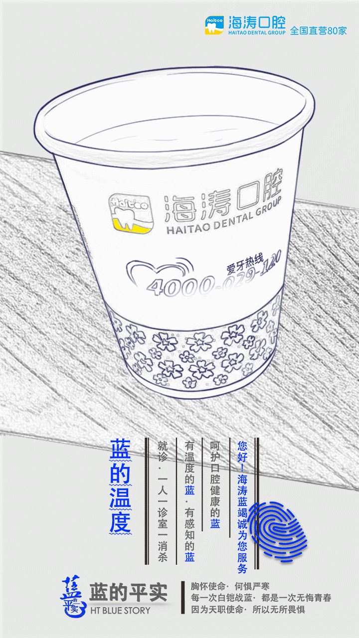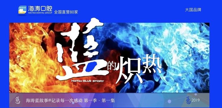 2022年海涛推出#蓝的故事#第一季《HT Blue Story》第一集,开篇《 穹顶之下的海涛蓝故事——“战”蓝》,采用时间上倒叙手法进行,前后叙述海涛口腔品牌27年来大大小小的故事。