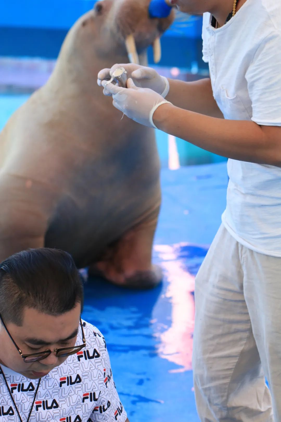 2019那年的夏天,海涛口腔为西安华厦文旅海洋公园的牙齿受损的海象“象二”做了牙冠保护,为它戴上特制的牙冠,重新拥有一副新牙。