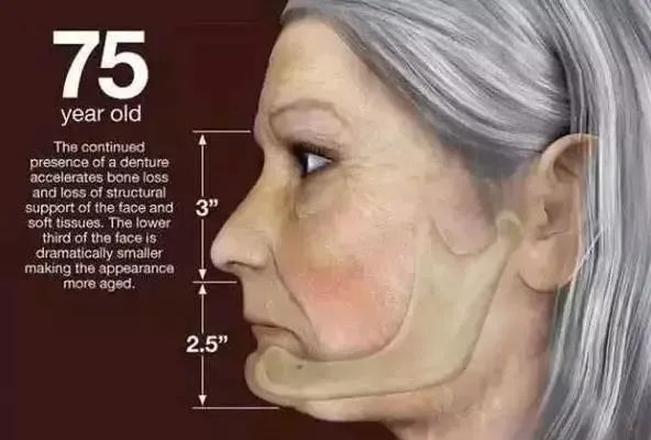 在很多人眼里,生老病死,牙齿缺失都是自然规律。实际上,牙齿缺失大部分都是由口腔疾病引起的,其中最大的元凶便是牙周病,由于得不到及时治疗,很多老年人几乎是全口缺牙,即使有余牙,也是松动不堪。加上许多老年人伴有骨质疏松,牙槽骨吸收明显,佩戴活动假牙有明显的不适感,再加上口腔意识不强,随意凑合,导致食不知味,说话漏风,面容衰老加速,从而诱发各种疾病。